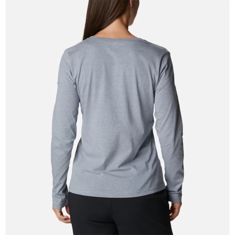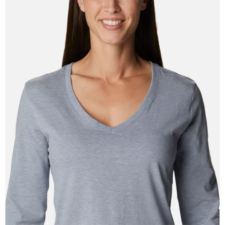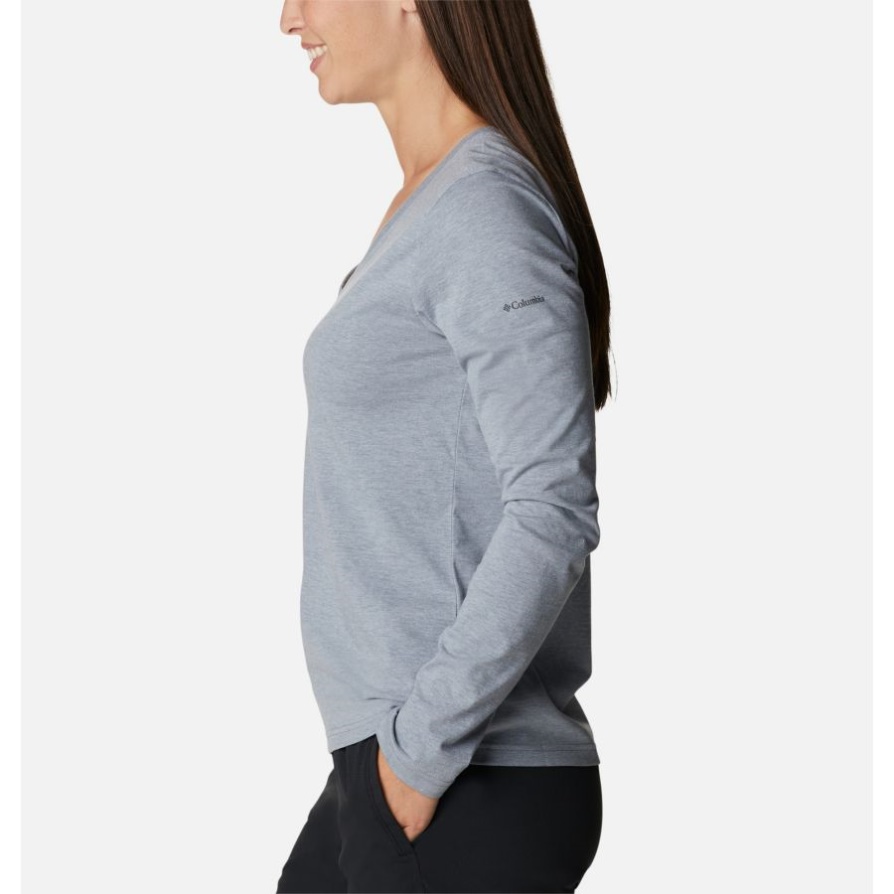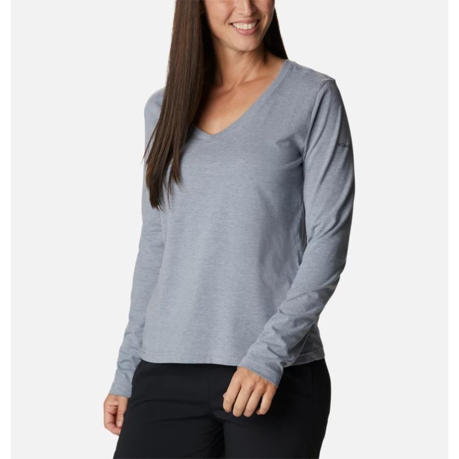 Tradewinds אפור הת'ר קולומביה חולצת ספיר נקודת ספיר לנשים עם שרוולים ארוכים