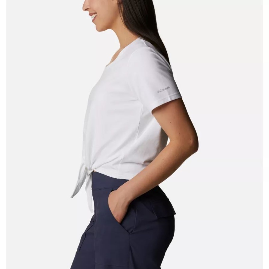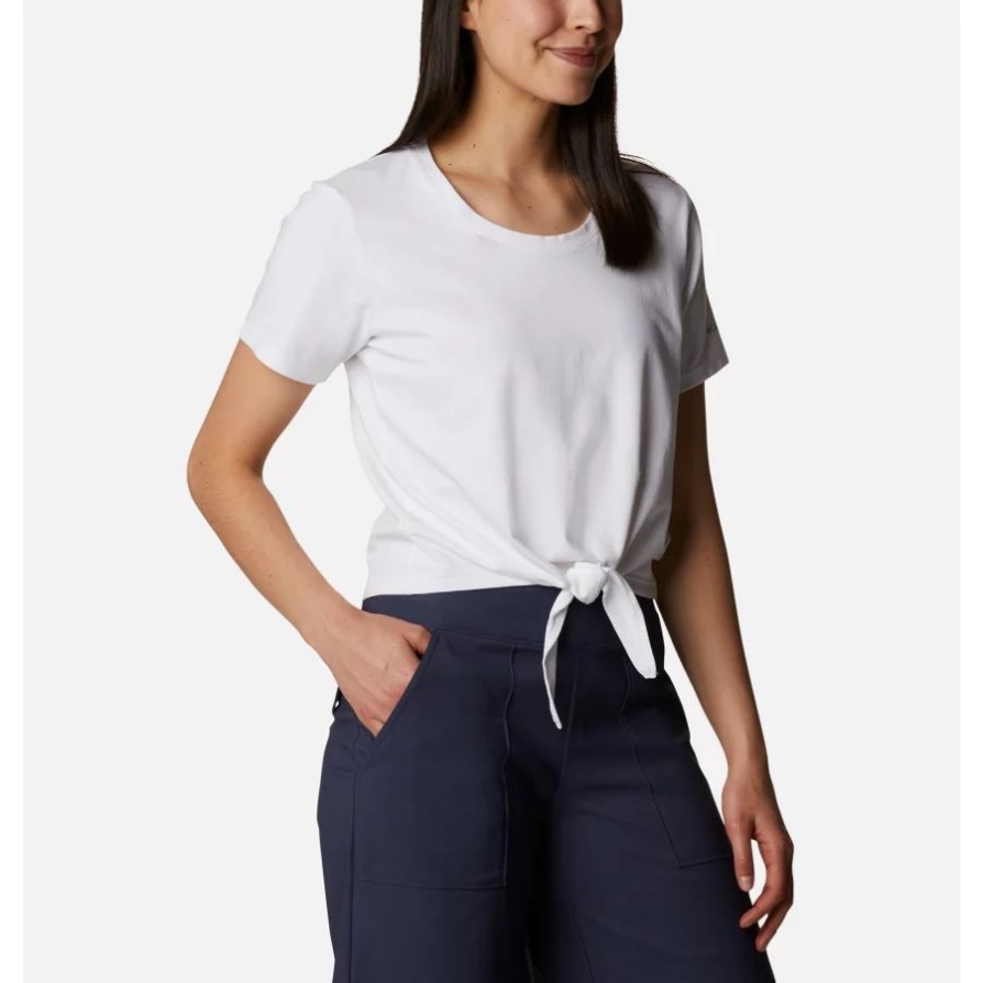 חולצה לבנה לנשים קולומביה טרק עם שרוולים קצרים