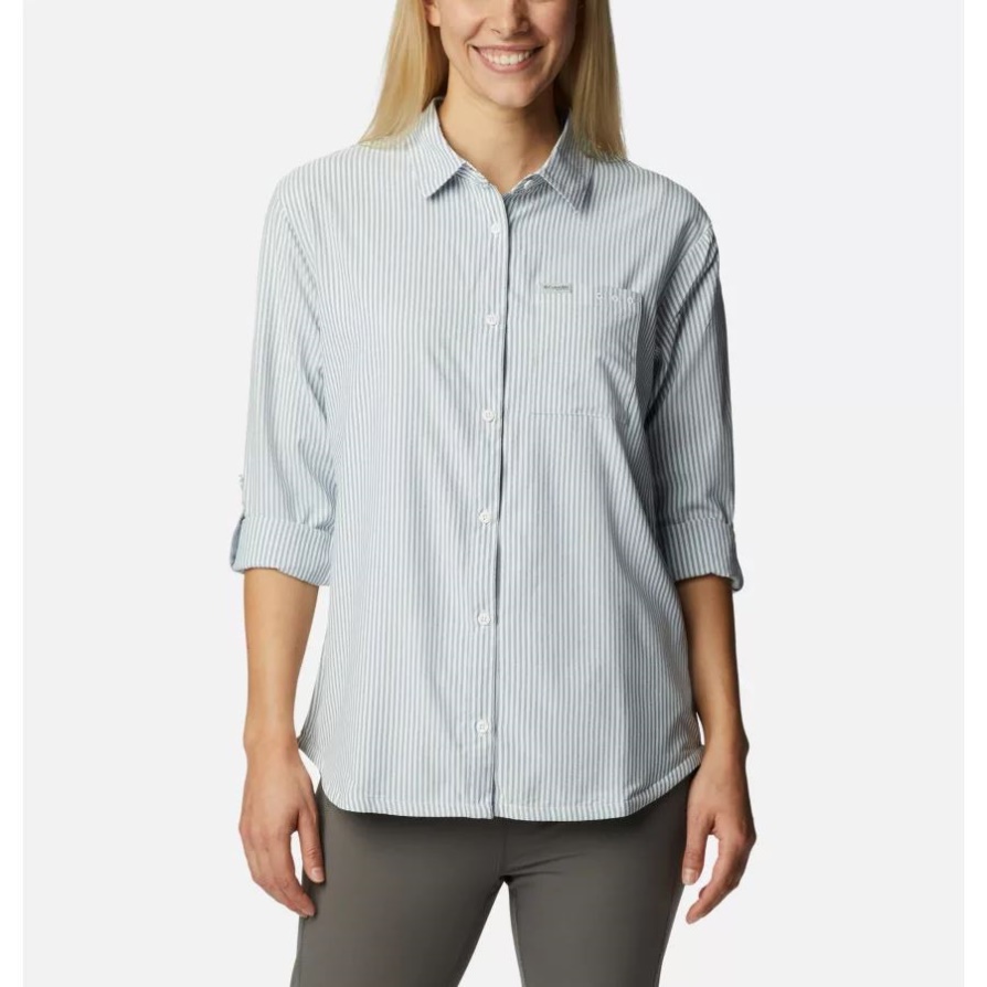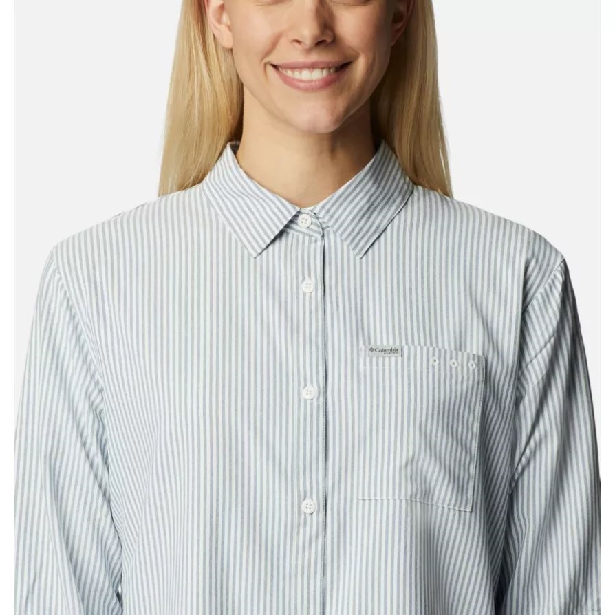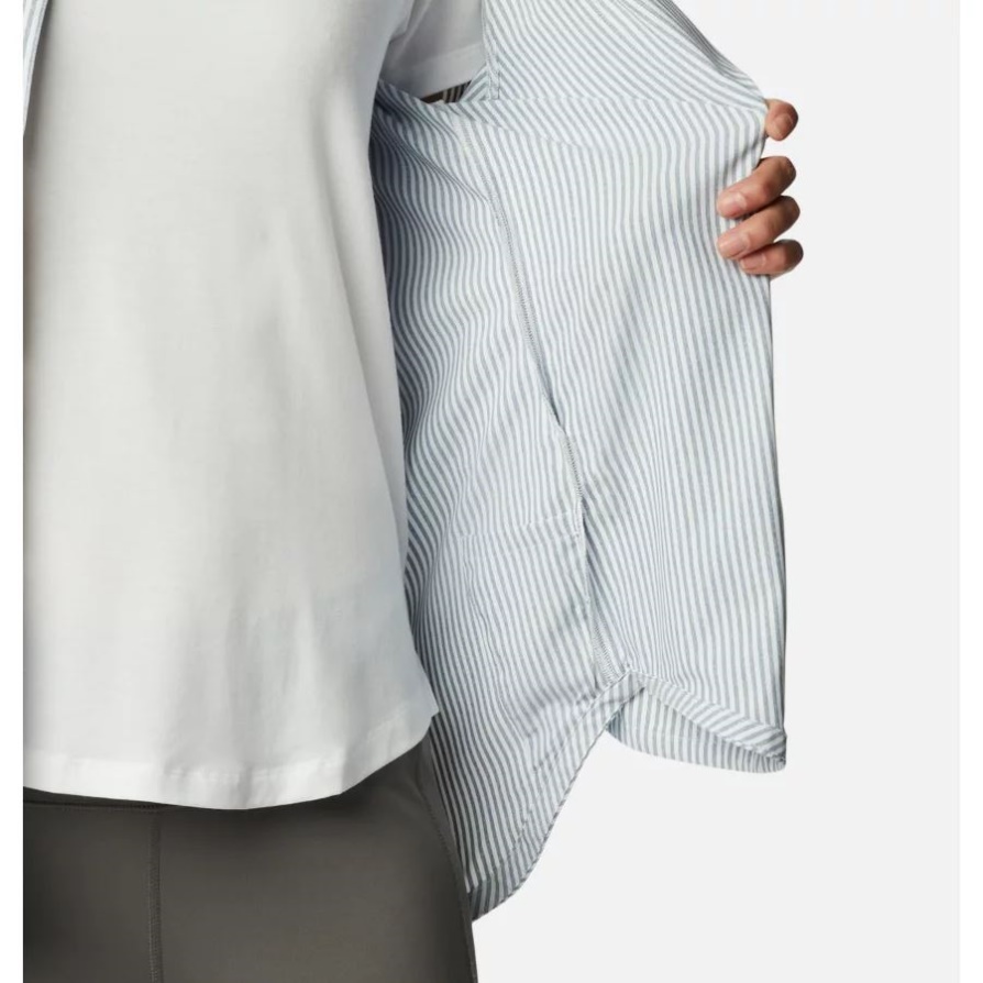 חולצת שרוולים ארוכים ארוג סאן דריפטר נשים Pfg פס קולומביה קרבון/אוקספורד